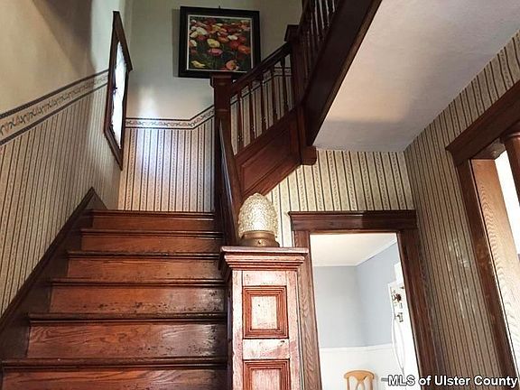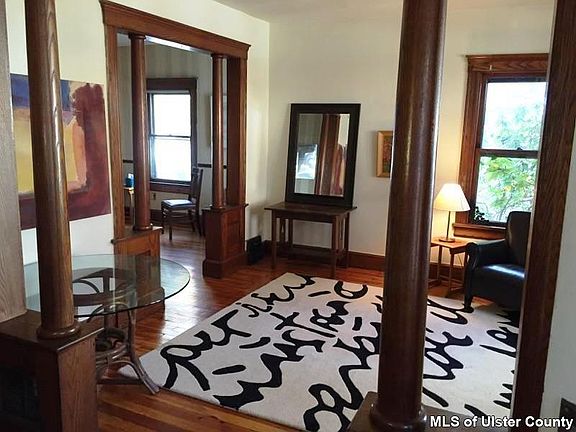 Charming two-story home filled with period details, amazingly light Florida sun room and finished large attic located on one of the nicest blocks of uptown Kingston. Walk to everything uptown has to offer. Sit in your large sunny back room overlooking the lovely deck and landscaped yard. Walk up a wide wooden stair case to the upstairs bedrooms. The large master includes a light and cozy additional room wonderful as a reading room or nursery. Finally ascend the finished stairs to a completed third level perfect for a teenager, an artist space or whatever suits your fancy. Enjoy off-street parking in your two car garage with easy access to back deck and kitchen. The home is move in condition with oak wood floors throughout (except in kitchen), molding and columns. Lets not forget the classic rocking chair front porch and the eat in kitchen with modern cabinets and countertop. It has absolutely everything you need. Newish furnace, hot water heater an dryer as well as the security of 2 sump pumps (in case of power failure, second pumps will turn on).