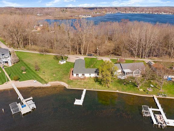 Get your boat ready! Over 123â of lake frontage, set on a large .70-acre lot, this Big Barbee Lake home offers plenty of room for entertaining. Featuring 1716 finished sq. ft., 2 master bedrooms with ensuites, another bedroom, 2 full baths plus a half bath ensures there is room for everyone. The open concept living area has a beamed, vaulted ceiling creating a warm and relaxing atmosphere. The dining room is adjacent to the galley style kitchen equipped with oak cabinetry, breakfast bar and a sunny window over the sink with beautiful lake views. Access the large wrap around deck from two sliding doors in the living area or from the sliding door in master bedroom to expand your living space, ready for entertaining and enjoying time with family and friends. Beautiful green lawn, leads to the beach area next to the water for the kids to play in the sand. Lot comes with seawall and a newer, maintenance free Brock dock/pier. The big yard has room for cookouts, camping by the lake & family games. Get in your motorized boat, kayak, canoe, or paddle board or get out your fishing gear for nonstop water enjoyment. Big Barbee Lake is part of Barbee Chain of Lakes, which includes Banning, Irish, Sawmill, Sechrist, Little Barbee and Kuhn lakes. Make a day of it touring all of the lakes! This charming area offers many ways to adventure with the kids, bond with family and friends, or relax and watch the sunset over the lake. Ideal for a family retreat/vacation home or year-round living. Rent, Airbnb or VRBO for extra income. Big Barbee Lake is the perfect haven for nature lovers, boating & fishing.