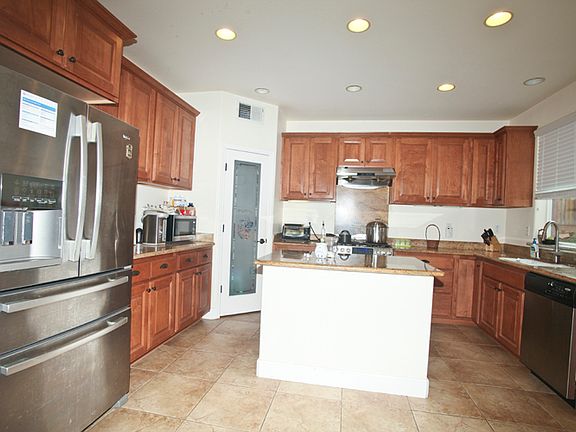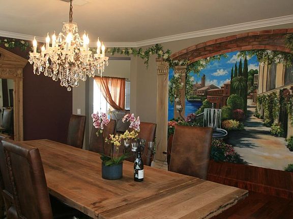 Priced to sell! Immaculate home in Move-in condition. Was builder's model home. Mural in the dining area. Newly renovated bathroom with floor to ceiling tile. Hardwood flooring. Living room with soaring ceiling of more than 20 feet. 2 bedrooms w/ walk-in closet. Huge master room. Upgraded GE Cafe gas range. Kitchen with island, granite slab counter tops. Gorgeous yard. Extended driveway with stamped cement to park 7 cars. Stamped cement side yard. Quiet road and extremely safe area. Many extras. Great for enjoyment & entertainment!
