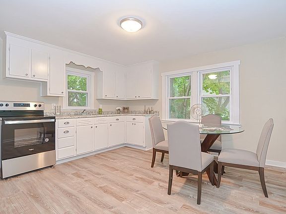 WOW!! Welcome home! This ranch style home is perfect for first time buyers, downsizers, or as a condo alternative! Walk in the front door and fall in love with an open floor plan with fresh paint throughout the interior accented by the rich, refinished dark hardwood floors and tons of natural light. There is an oversized living area perfect for entertaining with a half wall open to dining area and kitchen. White cabinets, a new countertop and new stainless oven are complimented by new plank flooring and easy access to your backyard. The two bedrooms offer plenty of space for your furniture and storage and served by a bright and clean bathroom There is a full stairwell to the attic offering tons more storage. Also have a large full basement which gives you a bright, clean space for laundry and opportunity for Finishing. Tucked away on quiet street, but also nearby to major routes.1 year home warranty included if you close by Dec 15.
