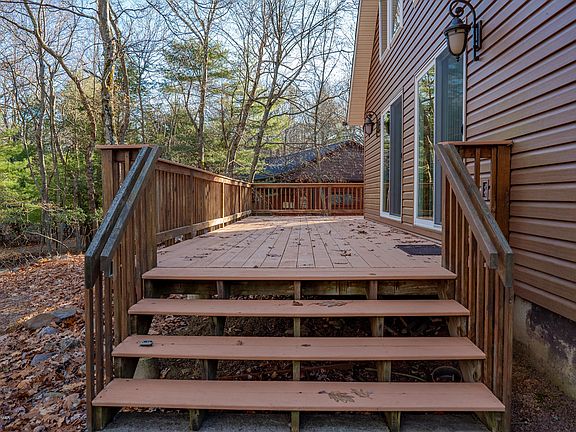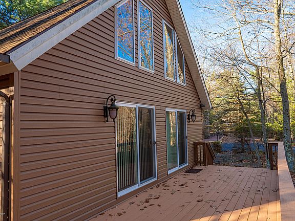 Welcome to Beautiful Lake Harmony! Get ready to enjoy the fours seasons of the Pocono Mountains. Spacious 4 bedroom 2 & half bath home located in Lake Harmony Estates on a wooded lot. Get your fire pit ready for the back yard or enjoy the large front deck. Enter the home into an open concept family room leading into the kitchen with brand new stove, microwave and refrigerator. Gather in the family room around the cozy wood burning fireplace. First floor has a large Master Bedroom with renovated ensuite and a 2nd Bedroom big enough to become a bunk room or keep as a private second bedroom with bonus room. Upstairs features 2 bedrooms half bath and loft area. Plenty of room for families to live or use as an investment property. Home has new roof, widows, front door and vinyl siding