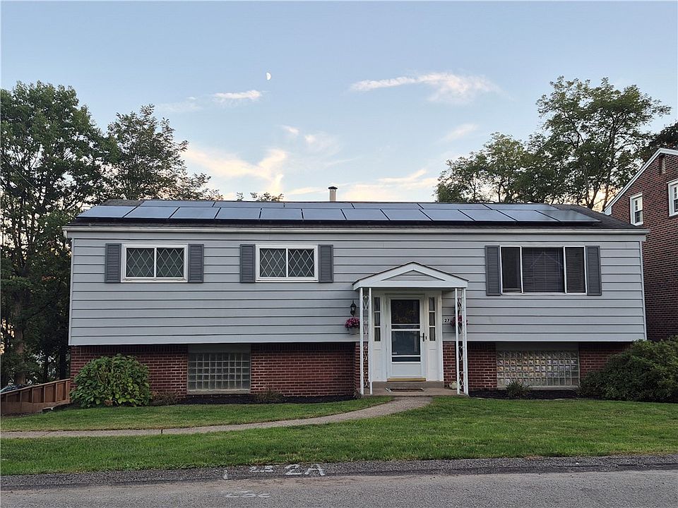 Just in time for holiday entertaining! This split level, 3 bedroom, 2 car garage home, with an open floor plan, screened in rear deck, spacious lower level finished game room, 3 bathrooms, and enough kitchen storage for all your cooking gadgets and entertaining needs awaits you! Plenty of yard space and natural light makes this home feel like the perfect balance between serenity and summertime cookouts with family and friends! As an added bonus, the living room is wired with surround sound speakers and a projector in the main living room, perfect for hosting movie nights, Oscar Parties, or Steeler Sundays! And no need to fret about those skyrocketing electric bills! This home comes with leased solar panels that convey with the property!