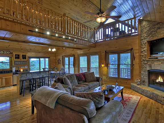 This One Has It All!! Aska Adventure Area, Stunning Mountain Views from nearly every room, Near Toccoa River & Lake BR, USFS...yet close to histric downtown & recreation areas, true Craftsman Quality with Rustic Flair & Distinct Detail...4 bedroom/3bath Lodge Style cabin is nestled on large tract with towering hardwoods & lush landscape-barely see another house, lavish living area boasts "sky high" ceilings & catwalk leading to lookout balcony & lovely loft, master ensuite features screened sleeping porch & fabulous master bath, plentiful glass, porches & decks galore, custom cabinetry & granite counters, upscale fixtures throughout, full finished terrace level w/guest quarters, 3 massive stone fireplaces, oversize "party porch" w/ FP, paved driveway with easy access and plentiful parking/turnaround area, tastefully furnished & located in upscale, rustic, paved community yet tucked away! Just right for you! 12/20/15