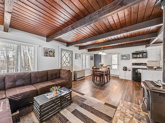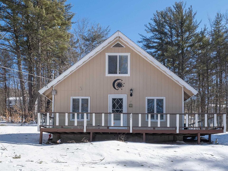 Gilford, NH 03249 - Come see this well maintained home, on 0.70 acres, offering three bedrooms, and two bathrooms. Located within minutes of Gunstock Resort, with Deeded beach rights, to Lake Winnipesaukee, and the possibility of a mooring. Peek a boo views of Lake Winnispesaukee, situated on a slightly sloping lot, with a level backyard, ideal for playing, and entertaining with friends and family. Cozy and bright interior, offers open concept living, dining room, and kitchen. Full bathroom, bedroom, and bonus room, are located on the first level. Two additional bedrooms, and an updated half bathroom, are located on the second level. Newer septic system, hot water tank, and architectural shingles. Three heating sources to choose from, electric, monitor heater, and wood burning stove, perfect for those cozy winter days. Ideal for a year round residence, or that vacation getaway you have been dreaming of. Close to Gunstock Resort, Lake Winnispesaukee, Weirs Beach, shopping, and many other Lakes Region attractions. Welcome to 27 Falls Avenue!
