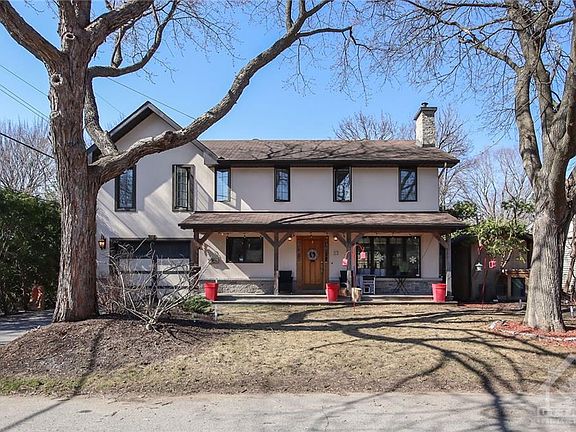 Stone and stucco home situated on a south facing 80foot by 65 foot lot, that backs right onto the Park.Fully matured maple trees and cedar hedges ensure privacy with only one immediate neighbour. Maple hardwood floors throughout. Ceramic and porcelain bathroom tile. Hard wired Cat 5 to bedrooms and and 1GB Bell Fibe installed. Double vanity sinks in ensuite and guest bathrooms. Solid black cherry shaker style cabinets with granite French doors exit the 24 foot long primary bedroom onto a cantilevered balcony that is situated amongst the tree top, overlooking the park. The large rear deck has ample space for entertaining, and has been framed in and wired to accept a hot tub. The front veranda lets you enjoy the remarkable community spirit when you are so inclined. The 24 foot long garage has overhead doors at each end allowing you full rear yard access or additional entertaining or covered bbq space. Custom shelving for storage and built in ski rack.