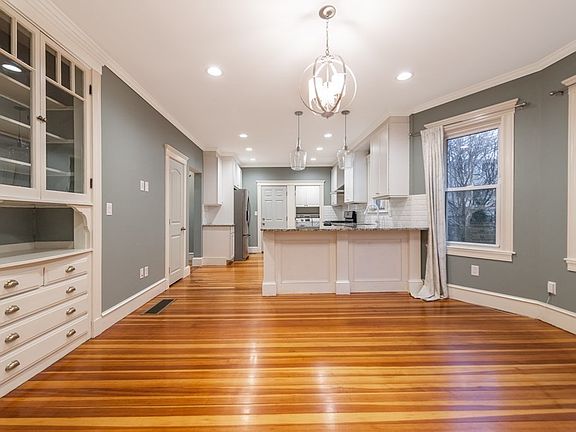 This beautiful home was tastefully remodeled in 2016, preserving its original charm while adding modern amenities. The welcoming entryway has efficient, custom storage and a happy little half bathroom. The large open concept living area is perfect for holidays, with large living and dining areas, an elegant fireplace, stained glass window and original back-lit china cabinet. The warm wood floors glow in the afternoon sun that beams through the many windows. The kitchen has an abundance of counter space, cabinet storage, bar seating and an updated appliance package. Both bedrooms are a great size with custom closets, and a bonus room would make the perfect at-home office. Other features include a private deck, shared back yard, private storage and parking. Ideally located just steps away from charming Roslindale Center, the Commuter Rail and the Arboretum, this home is the perfect escape from the bustling city life yet includes all of the conveniences you are accustomed to.