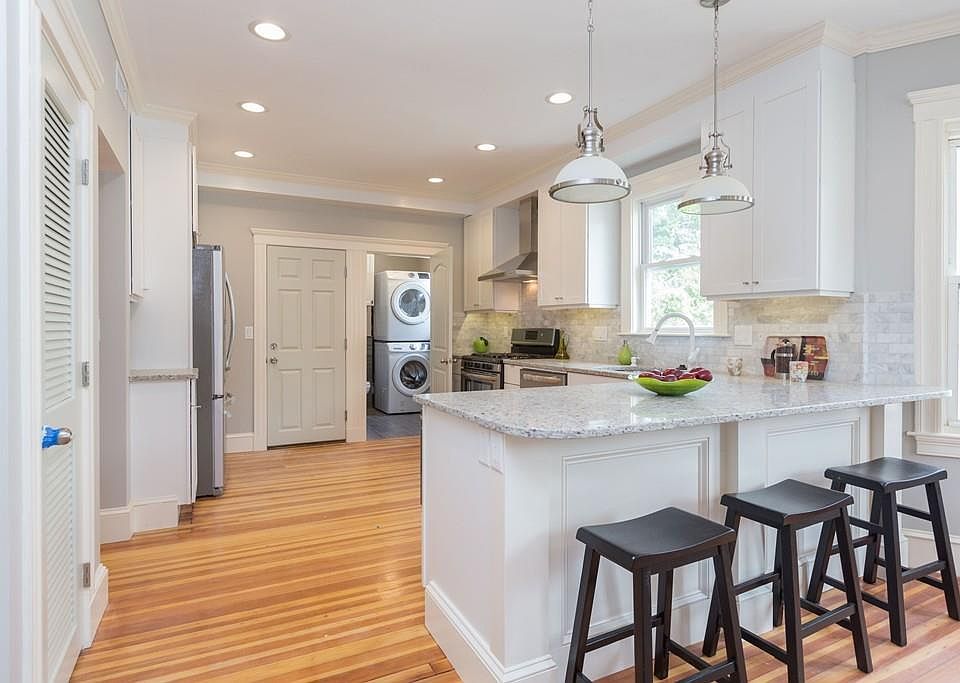 Situated in Boston's best value neighborhood this stunning new conversion is a fantastic value! Features very high end workmanship and quality seldom found. 3BRS, 1 1/2 baths, fireplace and parking. Well appointed white kitchen with great flow, plenty of cabinet space and upgraded appliance package. Classy and contemporary baths. New plumbing, electric, and HVAC. W/D in unit. Central A/C. Custom woodwork and crown molding throughout. Recessed lites. Generous bedroom sizes with versatile built-ins provided. Living room adorned with quaint stained glass window and elegant fireplace which provides warmth and atmosphere. Generous storage space in basement. Private deck. A+++ location, just steps to commuter rail, Roslindale Village and Arboretum.