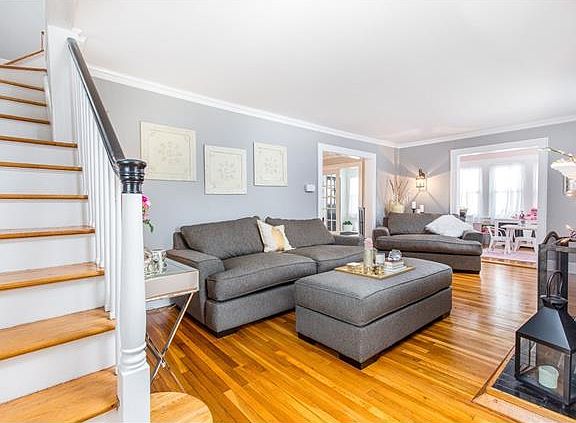Picture perfect! This home is filled with charm and character. Living room features a fireplace surrounded by built-ins & french doors that lead to a conveniently located den/office. The formal dining room is spacious and has pretty wood finishes and french doors to the sun room which leads to the perfect back yard. You will love the kitchen with its pretty cabinetry, farm sink and abundant detail & charm. The upper level is home to three bedrooms and a full bath. There are beautiful hardwood floors throughout and a partially finished lower level. Great back yard for entertaining. 1 car garage with walk up loft. Move in ready and the perfect place to call home. Located blocks to down town Milford green, Train & Beach.
