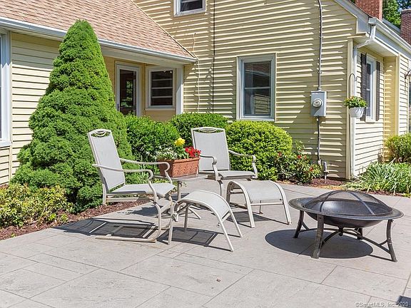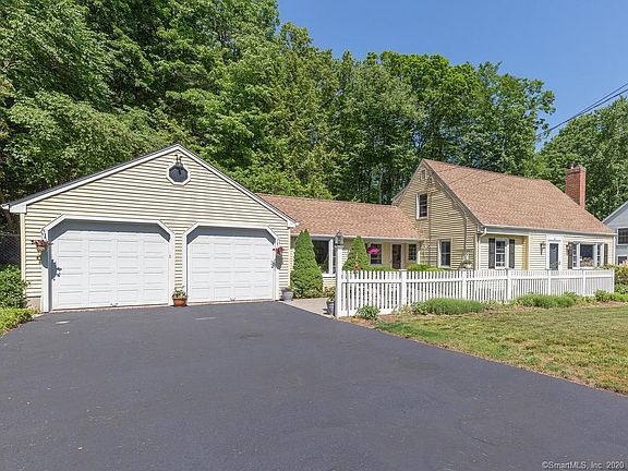 This oversized storybook Cape boasts a warm and functional floorplan with incredible natural light. The large family room with skylight, built-ins and window seat flows seamlessly into the eating area with french doors to a spacious trex deck. Most rooms have beautiful oak floors, fresh interior paint and newer thermal pane windows. The formal living room features a fireplace w/ a pellet stove insert and a partially open staircase leading into the formal dining room. There is a 1st floor bedroom and full bathroom for those needing a main level bedroom. The upstairs includes 2 sizable bedrooms and another full bathroom. The exterior has many options for outdoor living including a front patio with perennials and white picket fence, garden area and a rear deck overlooking the private rear yard. Great circular street for walking the dog and a super convenient location... restaurants, shopping and more just 2-3 minutes away. This home is very well maintained and a pleasure to tour. An incredible value in Simsbury for under $300K.