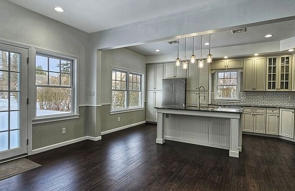 Beautiful New Construction, 4 bdrm's with 3 full baths, Wonderfully Large Open Gourmet Kitchen with Granite Center Island & Countertops & 2 Ovens ! Radiant Heat Throughout 1st Floor, Radiant Heat in all Baths. High Ceilings throughout house, High Cathedral Ceiling in Master Bdrm, Double Sinks and Full Body Shower in Master Bath. Extra Large Room on Third Floor, Separate Heating Control in all Bedrooms. Two Car Garage has Special 8' High Doors with Heating and Cooling as desired. The Boiler supplies the Hot Water for the Radiant Floors, the Baseboard Radiators and the House Hot Water.