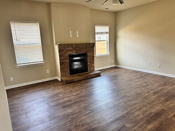 Features luxury vinyl plank throughout, granite counters, large pantry, upstairs laundry with sink, loft, fireplace, ceiling fans throughout, covered porch, fully fenced yard, and 2-car garage.
