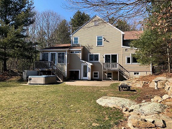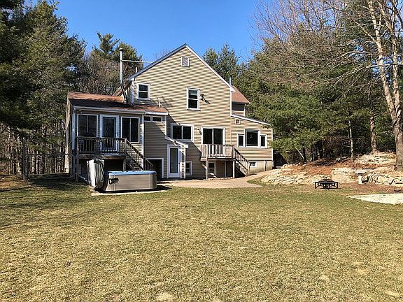A unique and picturesque Upton offering! This beautiful move-in ready home is set on a private .92 acre lot with sculpted stone walls and charming fenced back yard with carefully landscaped gardens. Enjoy a beautiful sunset or moonlit evening while relaxing in the recently installed eight-person hot tub! A sunroom addition (2000) with bamboo hardwood flooring and floor-to-ceiling windows provides another place to relax and entertain. Large bright & airy kitchen completely remodeled in 2018, features 8-foot granite island, stainless gas stove and dishwasher, gorgeous pellet stove, tons of storage & gleaming hardwoods. New paint throughout interior & exterior. Expansive 25x14 living room with hardwoods & wood burning stove. Master bedroom with cathedral ceiling and hardwood flooring. Three additional bedrooms on 2nd floor. Finished basement has kitchenette, half bath, bedroom, & walkout. Newer roof, Pella windows and slider, oil tank, & energy efficient indirect fired water heater. Desirable school district, 5 minutes from Nipmuc HS and Blackstone Valley Technical HS. Minutes to Westborough. Ten minutes to I-495. (Contact seller directly please - For Sale By Owner)