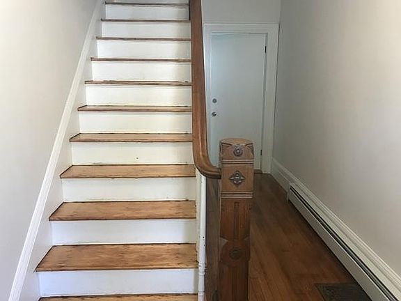 Available July 1! Cozy and charming one bedroom apartment in a multi family ideally located right in the heart of Arlington Center. Rent includes heat; tenant pays gas cooking, gas hot water and electricity. The apartment has three rooms. Living room with hardwood floors and lots of windows. Bedroom has stylish sliding barn door, large closet and en suite full tiled bath. The galley kitchen has white cabinetry, new counters and all new stainless appliances. Freshly painted, and refinished hardwood floors. There is a rear deck which is shared with one other tenant and some common yard space. Coin op laundry is in the basement, which is accessed only from the outside. Small amount of storage may be available in the attic. One off street parking space tandem in a single lane driveway. Landlord plows driveway. No pets, nonsmoker only. Arlington Center amenities just outside your door! Year lease. First month, one month security, fee. Renter's insurance required. 1BD-XYZ