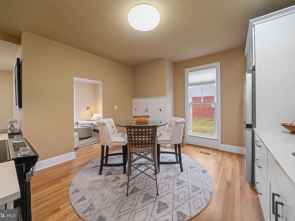 This property served as Taneytown's barbershop for many years, but has been lovingly renovated as a warm and livable home. Highlights are wood floors throughout (except for tumbled limestone brick in mudroom and laundry), with original heart pine still in some rooms. The eat in kitchen has lots of storage with soft close cabinet doors and quartz countertops. All the appliances are new, including the main level washer and dryer. Careful attention was paid to detail in the bathrooms so that they are beautiful and functional. Both have double vanities (James Martin cabinetry) with quartz counters, and large custom showers. A freestanding tub is upstairs, as well, along with a wall of cabinetry. The primary bedroom has a walk in closet, and all of the rooms have large windows. New dual zoned heat pumps provide efficient heating and cooling, and the electric service has been upgraded to 400 amp. Outside is a level lot with a storage shed, and if you want even more space, the lot behind the house is for sale too. There is plenty of room for off street parking, if desired. Downtown Business zoning increases your options - perfect for a home based business or professional office. Enjoy the in town vibe while still benefitting from Carroll County's rural beauty! Agent is co owner.