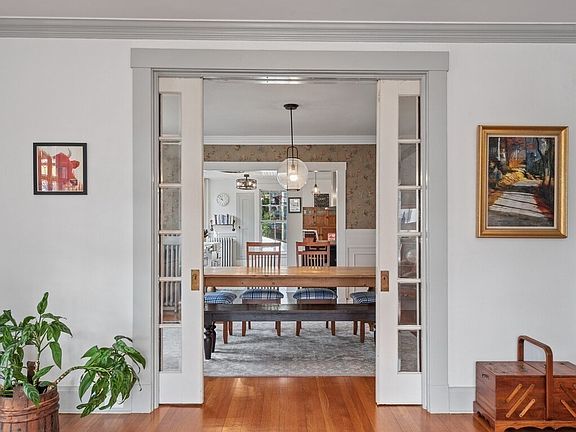 - Features: Flooring - Wood, Crown Molding, Pocket Door