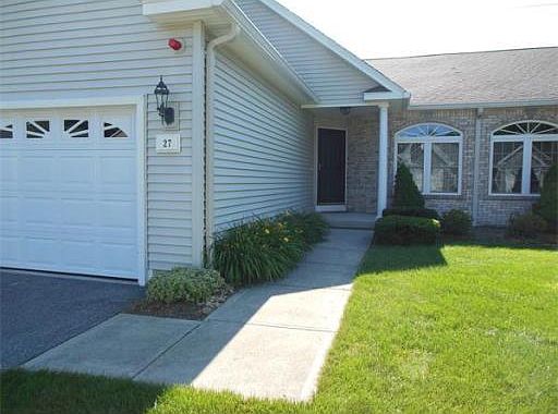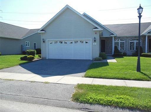 Carefree living in this beautiful end unit condo in Canterbury Woods. Spacious kitchen w/granite counters, hardwood floors,&stainless steel appl which opens to large bright dining rm/living rm combo w/newer carpeting & corner gas fireplace for those chilly evenings. French doors lead to bright den w/sliders to composite deck featuring elec. awning. Large master bdrm w/tray ceiling & crown molding; walk in closet and master bath w/2nd walk in closet, walk in shower and tile floor. Generous second bdrm with palladium window;walk in closet which leads to a full bath and laundry room. Need more space?? There is plenty in the partially finished basement w/newer carpet, full bath, walk in closet, and huge storage room. Unpack your bags...nothing to do but move in and enjoy your new home.