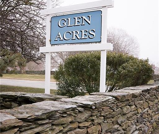 Single-level living at its best! Nestled between picturesque stone walls and Aquidneck Land Trust fields in southern Portsmouth, this pristine 2-bedroom condo in Glen Acres boasts many updates including hardwood floors, gas fired forced hot air and central air conditioning, granite countertops and in-unit washer and dryer. This residence has two garage bays and additional assigned parking for two cars. Plenty of storage including attic storage and private storage unit in common basement area. Cozy living room has built-in shelving and exposed brick fireplace. Very private patio off of kitchen. Just a stone's throw from the Sakonnet Greenway trails and 1 mile to Sandy Point Beach. Minutes to downtown Newport