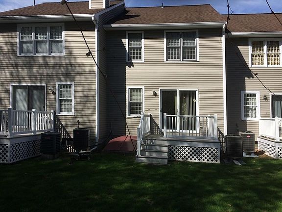 Welcome to this move in ready townhouse at Laurelwood Condominiums Kitchen with cabinetry and pantry, enjoy breakfast in your dining nook, living room/dining combination is spacious , dining room accommodates large table and seating for at least 6. A glass slider leads to a new composite deck where you will enjoy the colors of the changing seasons overlooking privacy.The large master bedroom will easily accommodate that king size bed, offers a full bath with double vanity and separate shower area. Second bedroom accommodates queen size bed. Laundry area is located conveniently on the second floor.. Newer heat and central air, exterior paint, roads, and lamposts leave nothing to be done! This unit is immaculate, in a great location. Has a full unfinished basement, and one car garage with unit. Complex is well maintained, being prepared for FIOS, no special assessments, and allows pets. Easy access to major routes 16,140,495, 85, mass pike