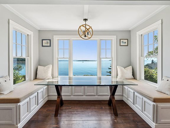 Upstairs, you'll find three bedrooms, including a luxurious primary suite with breathtaking views of the rugged Maine coastline. A charming room within the suite offers the perfect retreat for a home office or a quiet reading space.