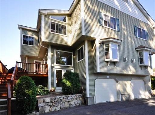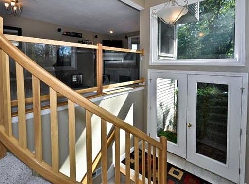 Sunny & Bright open townhouse w privacy! Large master bedroom with fireplace, sauna tub and separate shower. Home office area! Second bedroom has own full bath. Living room with bay windows and gas fireplace. Dining area part of open floor plan in Living room. Very large kitchen with granite counters, stainless dishwasher and refrigerator. Central A/C, separate laundry area that could be used as play room on firstlevel. 2 car garage and extra parking in driveway. Private deck overlooking forest. End unit for privacy.