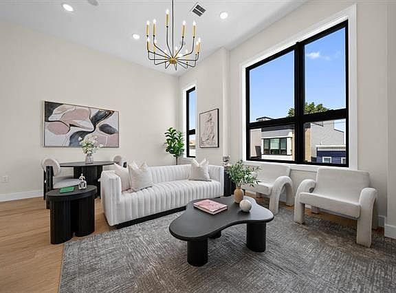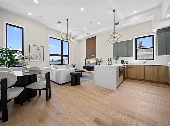 NEVER BEEN LIVED IN - TOP FLOOR new construction, 3-bedroom, 2-bathroom home with roof deck and garage parking in Jersey City Heights. The open-concept main floor features soaring 12-foot ceilings, a gorgeous top-of-the-line kitchen with stainless steel appliances, quartz countertops, custom lighting, and ample cabinet storage. The living room features oversized windows that fill the space with an abundance of natural light. The primary bedroom offers a custom floor-to-ceiling accent wall, built-in custom closets, pendant lighting, glass glass-lined balcony, and an ensuite bathroom thoughtfully curated by one of Jersey City's top interior designers. Completing your main floor are two additional bedrooms, each with custom closets, accompanied by a full guest bath, in-unit laundry, and coat and linen closets for additional storage. The glass-lined staircase leads to a massive roof deck with stunning views of the iconic NYC and JC skyline. The garage offers a full-size space complete with EV charging. Additional highlights include: central A/C, laundry in-unit, custom lighting, wide plank flooring throughout, and so much more! Located in the heart of Jersey City Heights, you'll find easy access to the Congress Street Light Rail and Central Avenue shopping district and an array of restaurants, parking, dog runs, farmer's markets, and community events. 27 Graham delivers modern design and convenience in the heart of the Heights.