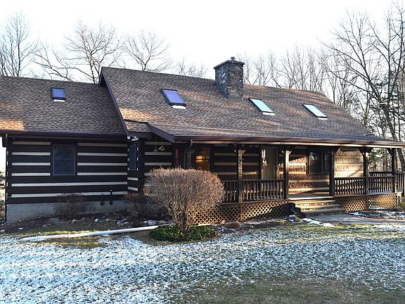 This hand-crafted and immaculately maintained timber frame home enjoys sweeping Catskill Mountain and pastoral views. The main level offers an open layout that combines living and dining rooms accented by a stunning two-story, four-sided stone fireplace meticulously crafted from local stone. Great room features skylights and access to a gracious, wraparound deck. Open kitchen with island features granite counters. There is a large master with updated, tiled bath and walk-in closet; two additional bedrooms; and a tiled hall bath. Second floor offers large light-filled loft area offering multiple uses, currently it is an office but it could be a family room. There is also a large guest bedroom with tiled bath and lots of dormer storage. Lower level features a sewing/craft/laundry room, generous space for mechanicals that could be finished as living space with walk out to rear. In addition, there is an oversized two-car garage. The house is sited on a semi-secluded 1-acre parcel with mature plantings including pines, hardwoods, ornamental shrubs and perennial beds accented with local stone work and walks. To the rear is a garden shed. The residence is just minutes to schools, shopping and Bard. Convenient to Rhinebeck and Amtrak as well as Kingston.