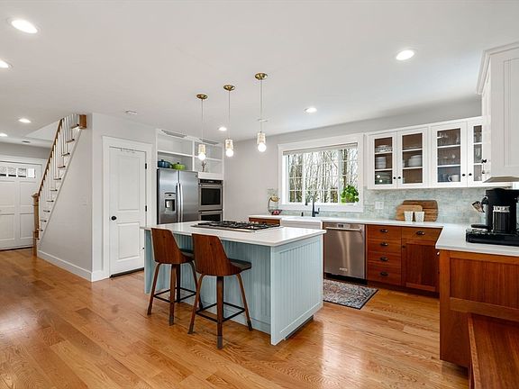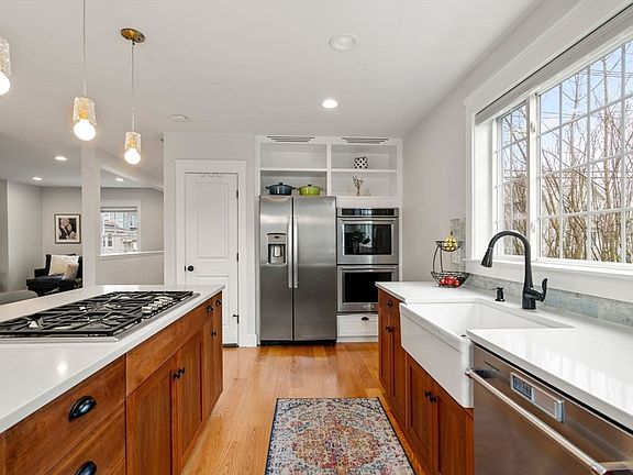 Nestled in the friendly Glenwood neighborhood of Medford, this 3-bedroom-plus residence has been fully updated (2021) for modern living. The main level has a spacious kitchen with custom cabinets, oversized quartz island, formal dining room, cozy living room and bonus office/ guest room with a full bathroom. The open layout of the kitchen seamlessly connects with the living and dining areas, fostering an inclusive atmosphere for family gatherings and socializing. Upstairs there are 2 bedrooms with walk-in closets, laundry room, and a large common bathroom. The top floor has a primary suite with ensuite bathroom and plenty of space for an office. Each bathroom has been updated to offer both functionality and a touch of luxury. 3 zone Central heating/AC, hardwood flooring throughout, 3 off street parking spaces, and private yard complete this home. Ready for its new occupants, this house combines comfort, style, and a convenient location. OH Sat/Sun 10:30-12:30