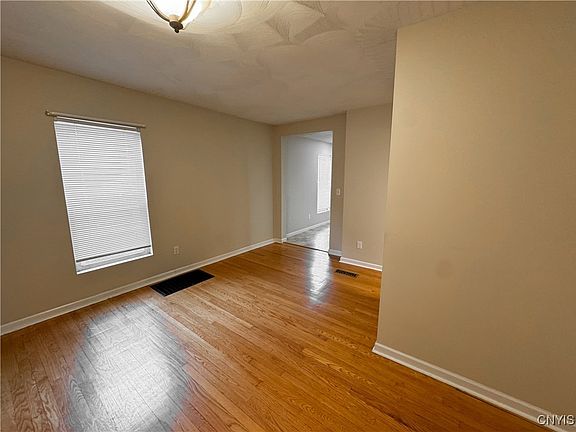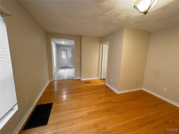 Check out this updated upper lower duplex in New York Mills! Right off of Commercial Drive, you're close to everything. Tons of space inside, formal living room, dining room, kitchen, and half bath downstairs. Both bedrooms have plenty of room for furniture plus the primary bedroom has an impressive walk in closet. Nestled on a quiet neighborhood street you're well positioned to go for walks, or sit on your covered porch and enjoy the quiet morning sun. Private front and rear entrance with plenty of off street parking. A shower tub combo upstairs including shelves for linen storage. Beautiful hardwoods downstairs give the home a cozy and well kept atmosphere. Available by September 1. Tenant is responsible for utilities including gas electric internet water. Snow removal, garbage recycling, lawn care included. No pets, no smoking.