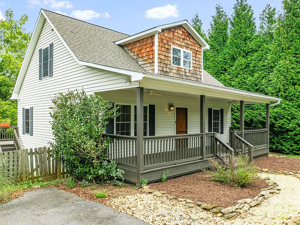 Charming, tasteful and well maintained home on a cute and quiet cul-de-sac perched above the coming Woodfin Wave park on the French Broad River! This move in ready house features a welcoming covered front porch, wood floors throughout, newer appliances and lots of natural light. The main level greets you with a spacious living room, nicely appointed kitchen, and two bedrooms. The entire upper level is a large primary bedroom suite with a tile floored bathroom, dual sinks and a spacious walk-in closet. There's a private back deck as well, and raised beds in the side yard for your gardening pleasure. Minutes from downtown Asheville, and downtown Weaverville this home is close to so many dining, shopping and recreation opportunities. It would also make an excellent rental/investment property. Don't miss out, come have a look today!