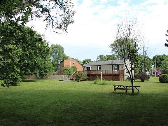 Turnkey ranch with central air, new siding and flooring, young roof, windows, and the potential for a third bedroom on the first. Hardwoods and crown molding welcome you to this home that is tucked away in a quiet neighborhood with a multi-level deck, overlooking open lot that is surrounded by wooded area. Plus, professionally finished media room in basement that could also be a bedroom option, and plenty of storage in basement, shed and even under the deck. Perfect for FHA.