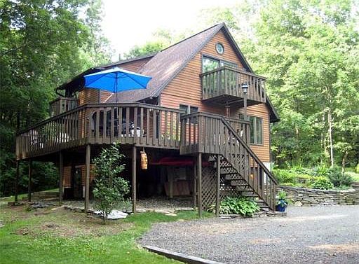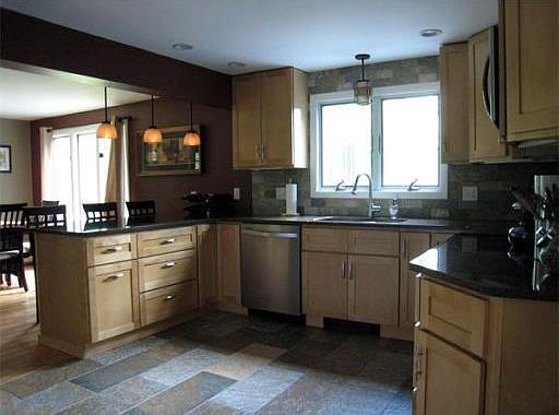 You're going to love this recently renovated Contemporary Cape...The cornerstone to the new open floor plan is the delightful kitchen with beautiful natural wood cabinetry, granite countertops, stainless appliances and stone tile flooring. The 1st floor also offers the convenience of a bedroom and full bath, and nicely refinished oak flooring. The 2nd floor, with its new bamboo staircase and flooring, features a master bedroom and full bath with terrace doors to a small balcony overlooking the backyard, and a second bedroom with cathedral ceiling and another small balcony. A finished family room in the walkout basement offers even more flexibility to the floor plan, and the spacious wraparound deck is the perfect place to entertain, or simply enjoy the quiet solitude of the private backyard. With a newer roof, updated electric and plumbing, and blown in insulation, all you have to do is move in!