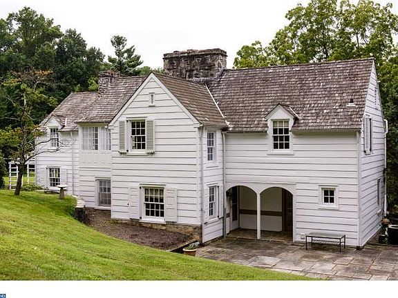 This historic farmhouse was designed by the renowned architect, Richardson Brognard Okie, & sits on a quiet cul-de-sac in Devon. Truly a home for the most discerning older home aficionado looking to live amongst history. 1st floor has entrance foyer with coat closet, living room with built-ins, powder room, family room with more built-ins & fireplace, kitchen featuring granite countertops, huge pantry and breakfast room. There is also a den on the 1st floor that gives access to the laundry room. Upstairs you will find master bedroom with access to master bathroom, enclosed porch, upstairs den with another fireplace & 2 bedrooms served by a hall bathroom. There is also access to a walk-up attic. The walkout basement provides more storage and additional space. Amenities include 4 total fireplaces, 6 flues, random width hardwood floors, beautiful built-ins, deep window sills throughout, elevator from 1st to 2nd floor, central air & the charm of yesterday that comes with living in an Okie. The grounds are surrounded by the Jenkins Arboretum and the property is close to schools, shopping, train, KOP and Wayne. This is truly a special place to call home.