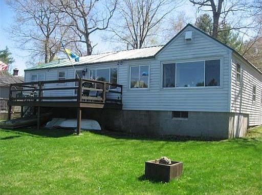 Look no further! This year round waterfront home has it all. Flat lot - no stairs here! Breathtaking views - from every room in the house! Attached garage. Septic system with leech field - no tight tank here either! Top all of this off with 75ft of SANDY beachfront and you have yourself the perfect lake house. Woodstove in LARGE OPEN living room. New laminate flooring through out.