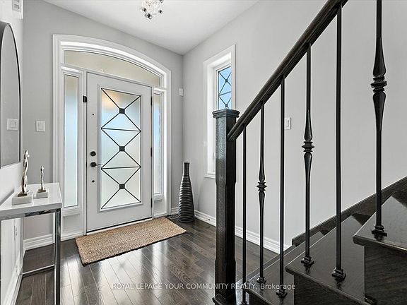 Welcome to this stunning executive home, showcasing luxurious upgrades and contemporary finishes throughout. Featuring soaring 9 ft ceilings and an open-concept design, this residence is enhanced by rich dark-stained hardwood flooring, elegant pot lights, and a striking fireplace with a custom floor-to-ceiling quartz surround. The chef-inspired kitchen boasts quartz countertops with a dramatic waterfall edge, a Calacatta marble and glass mosaic backsplash, under-cabinet lighting, premium maple cabinetry, and stainless-steel appliances. Step outside to professionally landscaped front and rear yards, complete with a stone patio perfect for entertaining or relaxing in style.