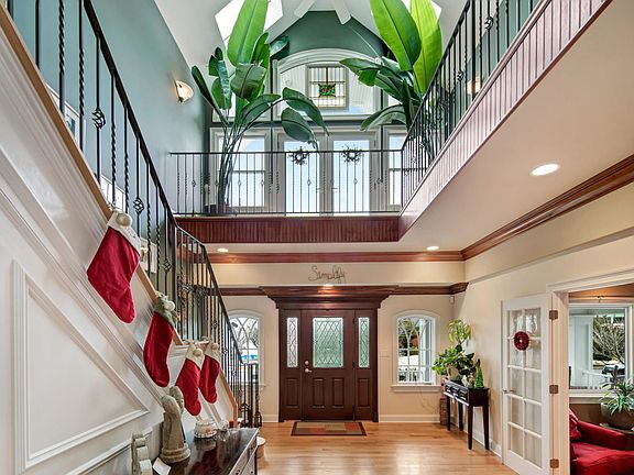 Enjoy Wonderful Bay Manhattan Skyline views! WALK TO NYC FERRY and Charming downtown! Custom 6 Bedroom, 4.5 Bath Home was designed in 2006 w/many fine architectural details! Dramatic open floor plan Two Story Entry, Sunken Living room w/charming brick wall plus family room w/wood burning fireplace. Beautiful kitchen great for entertaining, open to the family room W/bar seating charming columned dining area. 1st floor Master bedroom suite for those seeking separate bedroom quarters private office. 5 additional bedrooms on the second level,could accommodate a master bedroom suite,providing an additional Great room on main level. Loft area w/access to upper balcony plus Study. Great outdoor spaces including covered front porch, rear decking patio. Spacious finished basement garage.