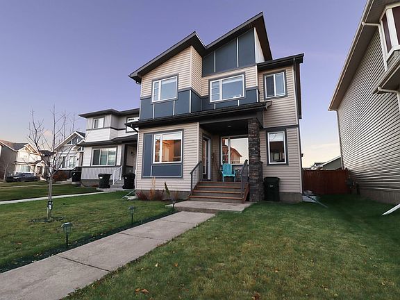 This air-conditioned 4 bed, 3.5 bath Family Home in desirable Harvest Ridge is located close to shopping and commuter highways, and within walking distance of three schools! The 2018 build features a professionally finished basement, 24'x24' detached garage, stamped concrete rear deck, and a fully fenced yard! Offering a front porch leading into a formal entry, expansive living room with feature wall leading to the eat-in kitchen with center island, walk-in pantry and quartz counters, this home leaves little to be desired. Rounding out the main floor is a 2 pce bath adjacent to the rear mudroom which leads to the back door. Up the stairs is the primary bedroom complete with a 5 pce ensuite and walk-in closet, bedrooms 2 and 3, plus a dedicated laundry room! The recently completed basement hosts the cozy family room, bedroom 4, plenty of storage, and a full bath straight out of a magazine. Value packed with quick possession available - do not miss out!