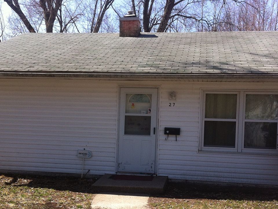 Has a detached garage in the back yard. 2 bedrooms, 1 bath, laundry area, and a large garage