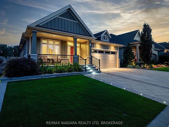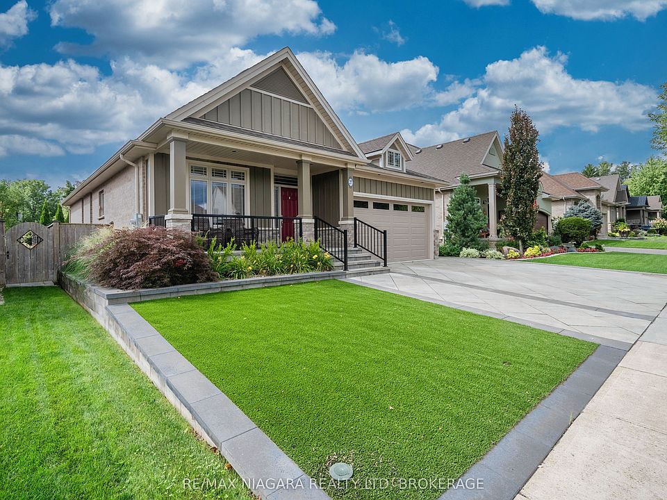 This beautifully maintained bungalow, ideally situated in the highly sought-after St. Davids community of Niagara-on-the-Lake. Combining comfort, style, and convenience, this home offers easy access to world-class golf courses, boutique shops, acclaimed restaurants, and the U.S. borderperfect for travelers or commuters alike.From the moment you arrive, the home's curb appeal shines with low-maintenance landscaping, lush evergreen turf, a full irrigation system, and mature gardens. The heated interlock driveway, accented with ambient lighting, ensures year-round functionality and elegance.Step inside to a bright and welcoming foyer, where large windows fill the space with natural light. The heart of the home is the spacious kitchen, thoughtfully designed with ample cabinetry, stylish backsplash, and a functional layout ideal for everyday cooking or entertaining. It flows seamlessly into the dining area and cozy living room, complete with a gas fireplaceperfect for relaxing evenings or family gatherings.The main level features a generous primary suite with a luxurious 5-piece ensuite, including double sinks, a separate shower, and his-and-hers closets. A second bedroom at the front of the home offers flexibility as a guest room or home office. A convenient 2-piece powder room and laundry area complete the main floor.The fully finished lower level provides excellent additional living space, featuring a comfortable recreation room with a potential bar area, a third bedroom, a renovated 3-piece bathroom, and a large utility room offering ample storage options. Additional highlights include a heated and insulated garage with attic access, a fully powered outdoor shed, fenced backyard with lush gardens and a deck ideal for outdoor dining or relaxation, heated floor in the 5pc ensuite and downstairs bath.Closet organizer for master bedroom, and the Remote awning outback.Don't miss your chance to make it yours!