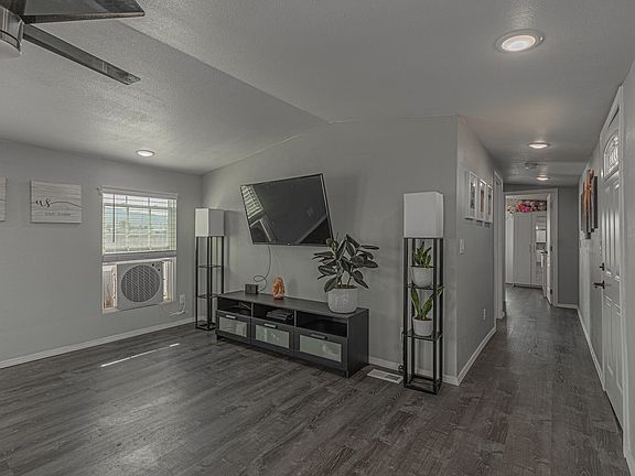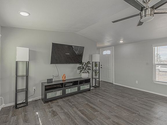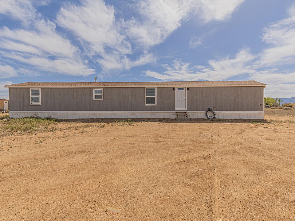 Check out this tastefully remodeled home on one full acre! This home offers 3 bedrooms, 2 bathrooms, an open floor plan, is freshly updated including flooring, drywall, paint, cabinets, fixtures, new skirting etc. and sits on just over an acre of land with some trees started, and great views of the Manzano Mountains. This home offers a newer septic system and shared well, both less than 2 years old, and city gas. Sale will be as-is, the primary bathroom is not completed, it will just need a vanity and shower or tub added.