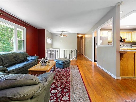 Expanded 4/5 bedroom, 2.5 bath raised ranch conveniently located in Brookfield near Route 7 and Federal Road ~ only a few minutes to Route 84. So convenient for travel and all of your shopping needs. This home is set upon 1.7 private acres which backs up to almost 60 acres of state owned open space ~ a great place to hike and enjoy the outdoors. Late fall and winter views look out over the valley. You will find over 2000 square feet of living space on the main level and over 500 square feet of finished space in the lower level with a wood burning fireplace and half bath . All of the bedrooms are generously sized with all three bathrooms updated. The kitchen is spacious and well appointed with a 5 burner gas cooktop, large oven range, breakfast bar and skylight. Access directly to the deck from the dining area is great for barbecues. Downstairs you will find a large bonus family/game room with fireplace and custom built-in shelving. Of note is a newly installed furnace in 2013 with three active zones and an ability to add in a fourth zone, a new water tank in 2020, a whole house fan and an electric panel wired for portable generator. There is great value in this property Make it yours