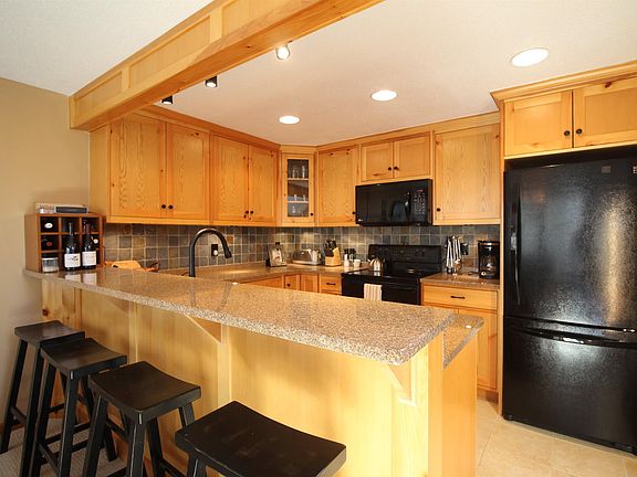 PERFECT IN EVERY WAY! This end-unit, south/west facing townhouse has been completely renovated from top to bottom and is in an ideal location! Enter to find an awesome mudroom with a pocket door to hide all of your gear. Head up to the living level and enjoy a perfect floorplan with the kitchen, dining and living areas all connected. Dramatic cathedral ceilings with huge windows flood the room with natural light. Warm your toes by the wood burning fireplace and relax in high end-furniture (all included!). Head up a level to find a sunroom landing complete with a sun deck. The primary suite is cleverly hidden with a pocket door and offers cathedral ceilings and a gorgeous bathroom with tile/glass shower, double sink vanity, granite counter-tops and more. The lower level offers more sleeping space with 2 more bedrooms, 2nd renovated bath and a ventilated ski tuning room/workshop! Don't forget the 4th sleeping space or den with nicely hidden full sized laundry and storage. Every single aspect of this property has been updated: Doors= replaced with beautiful solid wood doors, all flooring= replaced, Kitchen=incredible with high-end cabinetry, granite counter-tops, gorgeous plumbing fixtures, added light fixtures, tiled backsplash and more. Association has completed many capital improvements including windows, roof, siding, paint.. the list goes on. You won't have to lift a finger to enjoy this home as it is coming turn-key, start making memories!
