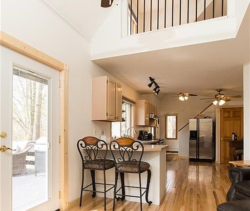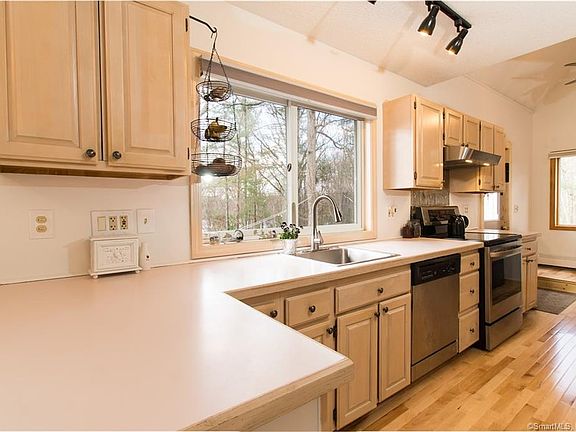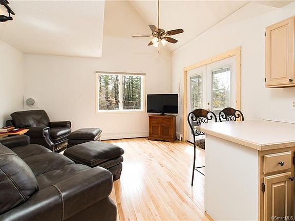 Enjoy waterfront amenities, views, and deeded beach rights in this great Pachaug community! This contemporary cape is stunning with vaulted ceilings, fresh paint and new hardwood floors throughout! On the main level you have 2 bedrooms, full bath, along with a bright and open kitchen and living area with slider leading out to the large deck that overlooks the water. The lofted area is spacious and with a master bedroom, bath and great view of the water! the lower level has the laundry room, and finished spare room leading out to the heated tandem garage. Don't miss this rare opportunity to live by the water in this sweet gem! No association fees in this waterfront community!