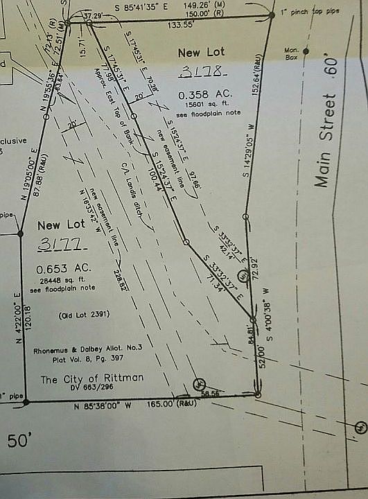 1/2 two commercially zoned lots at the corner of home and main street across from business stores. 0.653 acres with frontage and driveway off of home street Tax $187 per year
