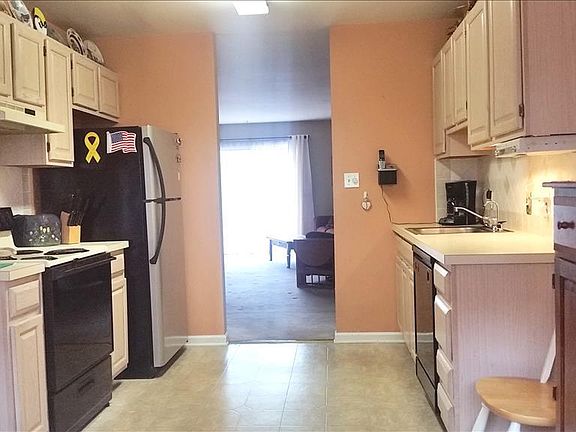 Single family townhome in mint condition. Modern kitchen with breakfast nook, formal dining room and living room with slider to second tier deck / country view. Lower level finished basement with walk out slider to cement patio. Separate hobby room or just extra storage. Second floor master bedroom fits king size furniture with his and her closets and ceiling fan. Bath with shower stall and six-foot vanity with double bowl sink. Second floor laundry for convenience. Low tax base, all gas utilities.