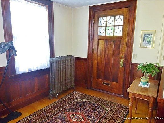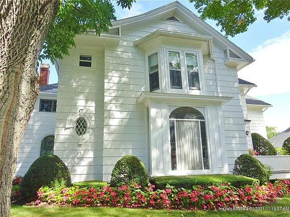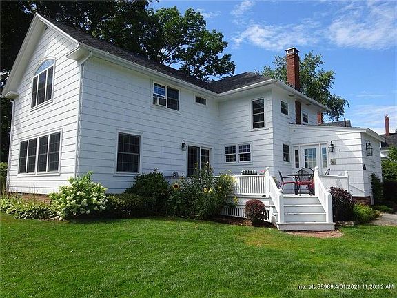 Exceptional and elegant Bangor home offers 4 bedrooms and 4 full & 1 half bath. Mudroom entrance with half bath is perfect for washing up on your way in with the groceries. Granite and gas kitchen with eat-in bar area and table nook. Spacious and well lit, the family room is a warm place to gather. Currently the music room with great acoustics, the formal living room with gas fireplace can also be a quiet place to relax. Mahogany dining area gives the home a nautical feel, and the wood burning fireplace (with gas starter) and sitting area with stained glass window is like none other. The basement is a nice area for crafts/workshop; additional living room; dry storage. Natural gas boiler and a solid foundation. 2 car/SUV carriage house is great work area, and the second level would make for great living space. Large yard and lawn area.
