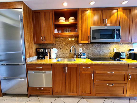 Napili Bay #107 is located directly on the majestic Napili Bay. Just steps to one of the best beaches on Maui this ground floor studio has amazing views and has been updated to offer a modern kitchen with hardwood cabinets, granite counter tops, refrigerator, cooktop, microwave & dishwasher. What more could you want? Listen to the sounds of the ocean from your lanai and enjoy nightly sunsets. Electricity and basic cable are included in the monthly maintenance fees. Currently in a busy rental program and sold fully furnished & turnkey. This low rise complex offers on site washer & dryers, BBQ area & year round sunsets.
