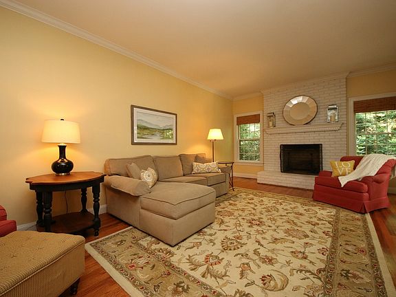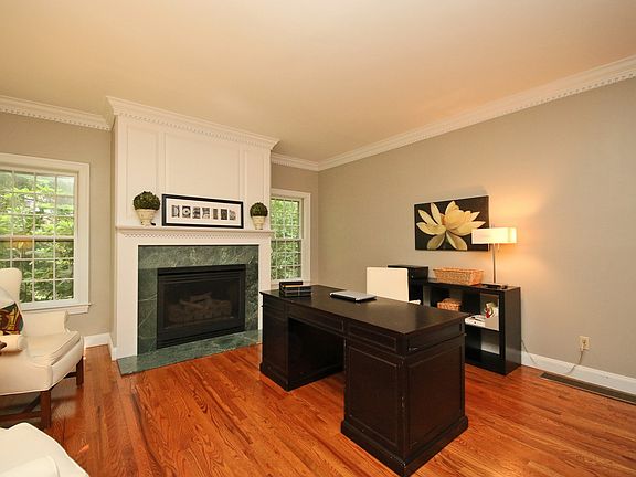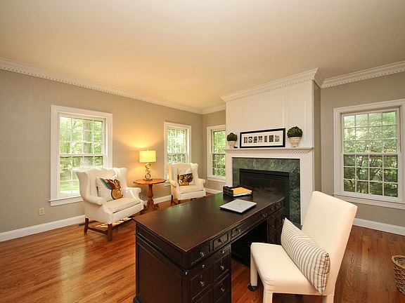Great home on a truly level manicured lot in sought after Hunters Ridge neighborhood. Well cared for 3600+ quare foot Colonial with recent paint and recently refinished Oak Hardwood Floors, 3 fireplaces, Crown Moldings. Gracious Master Suite with Fireplace, Vaulted Ceiling, Soaking Tub and Shower. Sun Room and kitchen open to a Private Rear Patio. 4th Bedroom accessed from separate stair case, ideal for in-law, au-pair, teen suite, or "boomerang" kid. See virtual tour for floor plan and many additional professional photos. Room for a Pool per updated A2 Survey attached in listing documents.