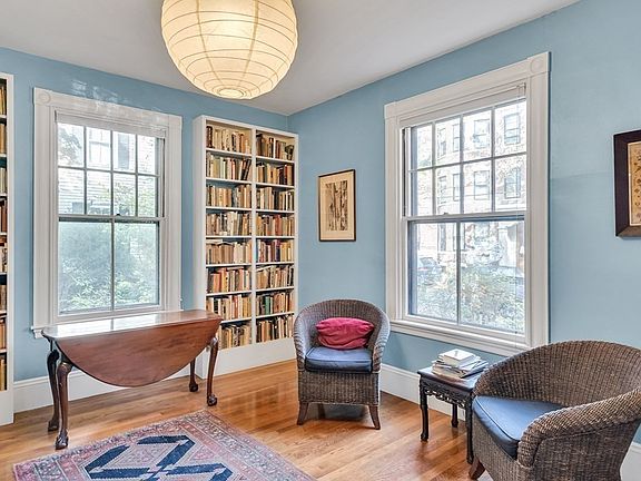 A Special Opportunity to own one of Cambridge's few remaining significant Queen Anne Style Homes (Circa 1894) on a prime street in a most sought-after neighborhood. This timeless gem has most all of its original period features- all in beautiful condition. The exterior presence is architecturally elegant with sculpted details and the original divided-light windows. There are three splendid fireplaces with restored chimneys and flu-liners. The floor plan is classic with rich hardwood flooring, many windows and nine-foot ceilings. A staircase with a large landing and a picture window brings you to the perfect four-corner bedroom layout with a common bath. A bonus third floor bedroom and unfinished attic space may inspire some expansion. The rear yard with patio is a private and unique natural habitat- with professionally maintained mature plantings and trees with a soothing water pond. Shed/garage, gas systems, off-street parking and proximity to Harvard Law, Harvard and Porter Squares.