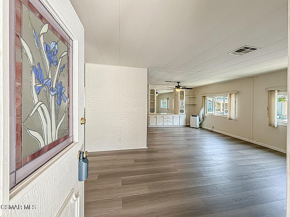 Bright, clean, move-in condition 2 bedroom/2 bath mobile home in beautiful Camarillo Springs development. No space rent! New wide plank flooring, freshly painted, and great location. The spacious family room could potentially be turned into a 3rd bedroom. Spacious bedrooms. Each with direct access to their own on-suites. Potential of converting the family room into a third bedroom. Fantastic gated community with low HOA dues and includes a recently remodeled pool facilities, and nearby Camarillo Springs Gold Course!