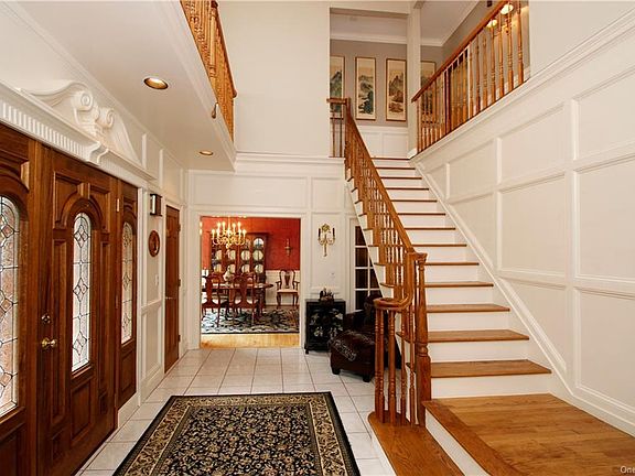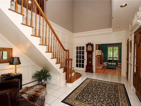 This English Country Colonial is located on a Cul de Sac. As you drive up to this majestic home your attention will be drawn to its Brick Front & Hip/Gabled Roof. The 2 Story Foyer welcomes you into this home with its Tiled Floor & Wall Moldings. The Living Room has a Cathedral Ceiling with a wall to ceiling Brick Fireplace. The other side of this see through Fireplace is your Family Room's Stone Fireplace. The Open Floor Plan is great for entertaining. Access your deck with Hot Tub through French Doors. Kitchen has Granite Tops & Stainless Steel Appliances. Master Bedroom & En Suite are on the Main Floor with Walk In Closet,Bay Window,Cathedral Ceiling. Upstairs you have an additional 3 Bedrooms with 2 Full Baths. You'll be amazed how the house lets the outdoors in with its large windows & skylights. If you need an office or spare living area you will find this above the 3 Car Garage with its own entrance. There is plenty of room to put a pool or tennis court on this level 4 Acre lot.